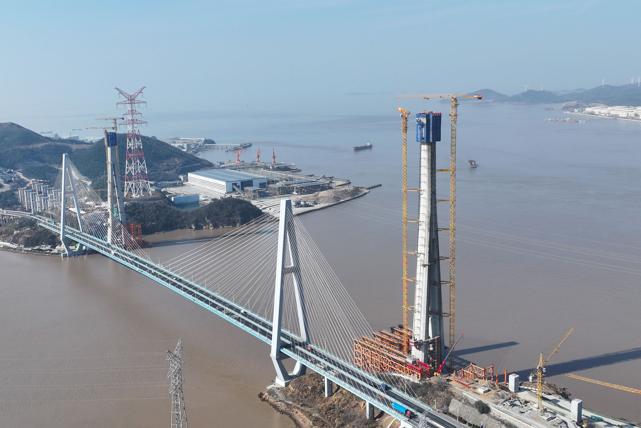 2月4日,由中国铁建大桥局承建的甬舟铁路桃夭门公铁两用大桥6号主塔顺利封顶,标志着该项目关键控制性工程取得重大突破,为后续斜拉索架设、钢梁安装等工序奠定基础。
