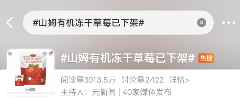 社交平台上,“山姆有机冻干草莓已下架”话题阅读量快速攀升,网友热议:“贵不等于安全”“有机标签不能当护身符”。有消费者称,经常买给孩子吃,对产品安全问题表示担忧。