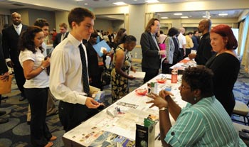 7月19日,在美国洛杉矶,人们在一次招聘会上寻找工作机会。新华社/法新 |