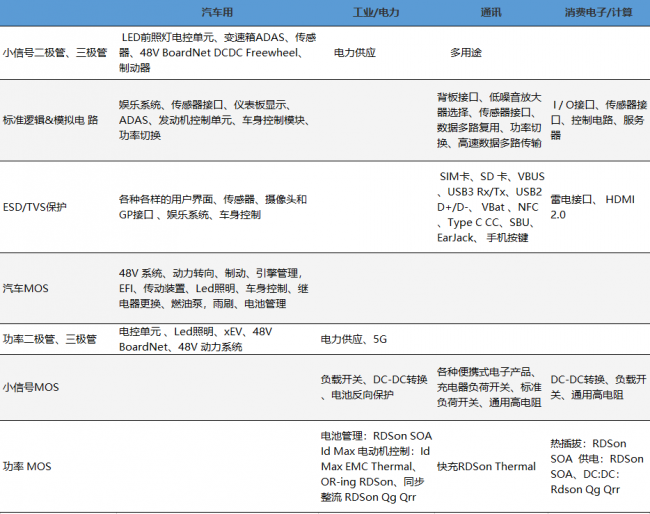 图4 公司主要半导体产品及其下游应用