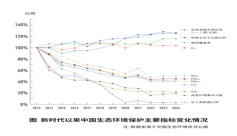 图2-1 新时代以来中国生态环境保护主要指标相较于2013年变动率
