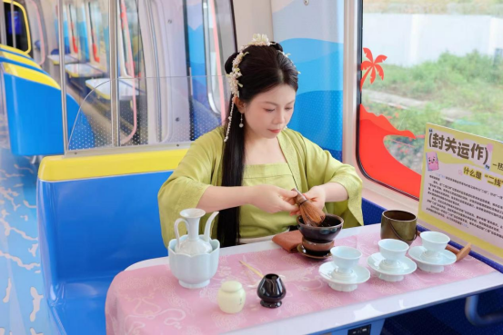 据了解,过去一年,三乐旅游铁路凭借其主题列车和科技设施,已成为网红打卡点。如今,三乐旅游铁路引入点茶这门古老技艺,极大地提升了旅途的文化质感。
