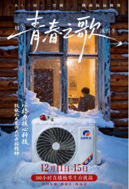 在冰天雪地里搭建一间“格力小屋”,里面摆满全能王柜机、508雪龙冰箱、如悦洗烘一体机、北欧时光篝火暖风机、6个9净热一体机、无雾加湿器等格力全套健康家电产品。在无额外热源的情况下,这些产品要连续100小时稳定运行,这就是格力“极寒直播”的全部场景。