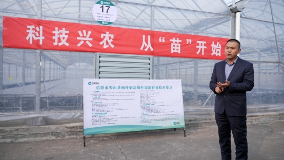 图为2月5日,烟站站长满振团为参加科普活动人员详细讲解烟叶育苗知识。