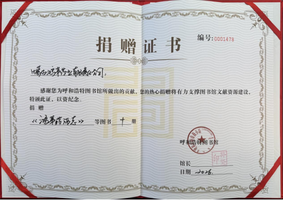 近日,《鸿茅药酒志》捐赠仪式在内蒙古呼和浩特市图书馆举办。鸿茅药业副总裁鲍东奇、《鸿茅药酒志》编纂者苏西恒、呼和浩特市图书馆副馆长马晓艳及馆方相关负责人出席仪式。现场,鲍东奇代表企业郑重捐赠《鸿茅药酒志》,呼和浩特市图书馆副馆长马晓艳代表馆方接受捐赠。本批赠书为图书馆注入了极具特色的中蒙医药文化文献资源,让更多人有机会通过这部著作,深入探寻鸿茅近三百年的匠心传承。