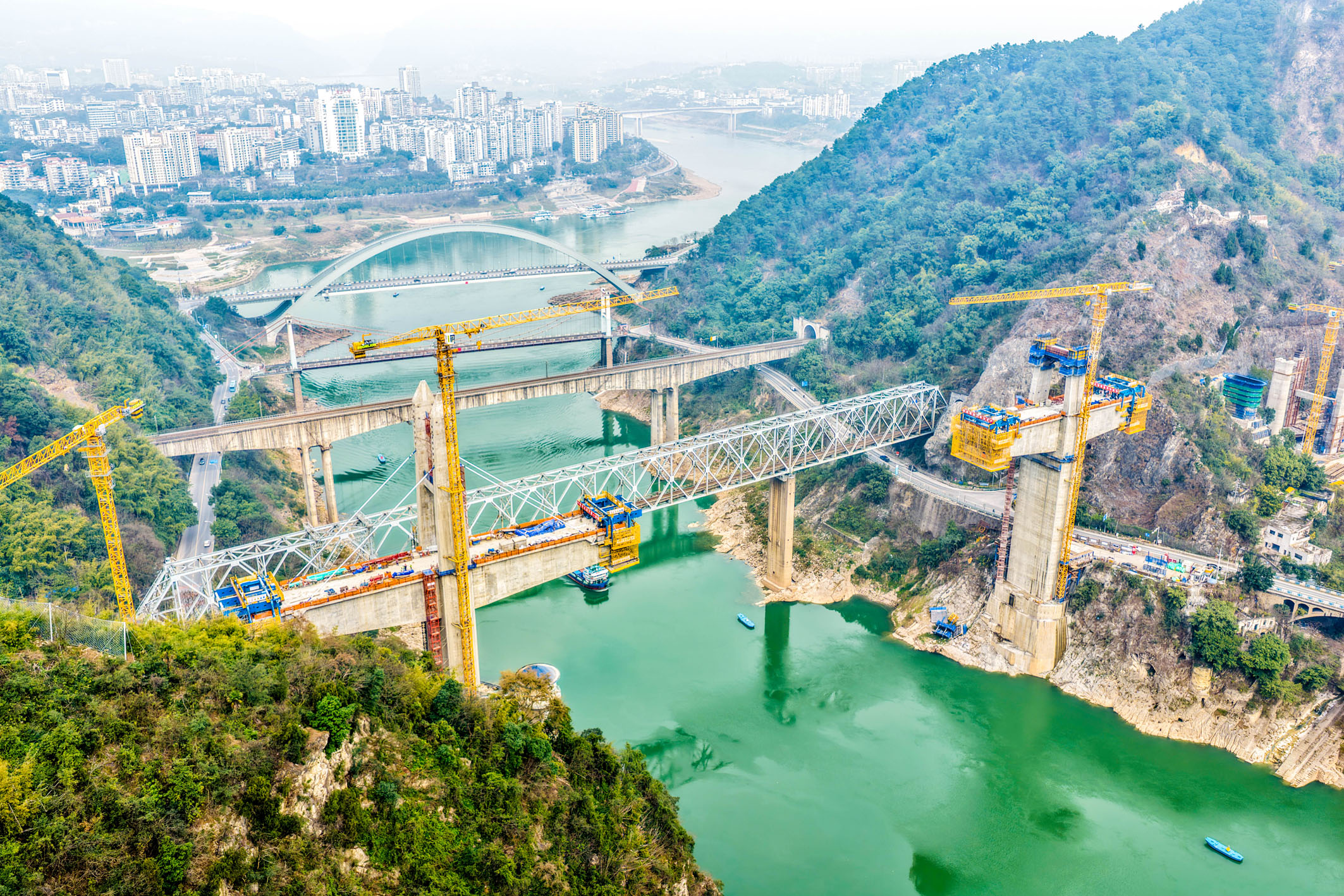 2月10日,由中铁十一局承建的西渝高铁嘉陵江特大桥首对斜拉索成功安装。春节临近,施工人员抢抓工期,确保重点工程建设进度有序推进。西渝高铁嘉陵江特大桥是全线控制性工程之一,位于重庆市北碚区,跨越嘉陵江,设计为矮塔斜拉桥。西渝高铁是我国“八纵八横”高铁网北京至昆明的京昆通道和包头、银川至海口的包(银)海通道的重要组成部分。