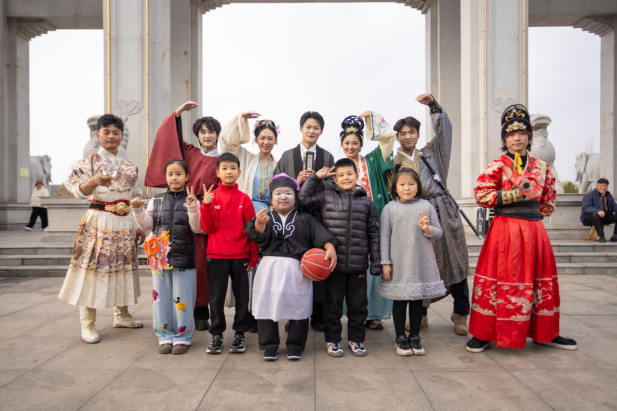 莒南天佛景区国风NPC与游客互动。邱翔摄