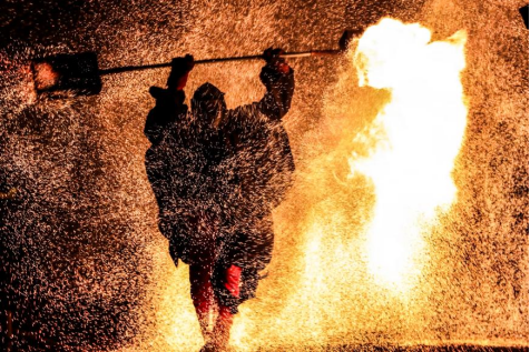 莒南天佛景区火笼表演。邱翔摄