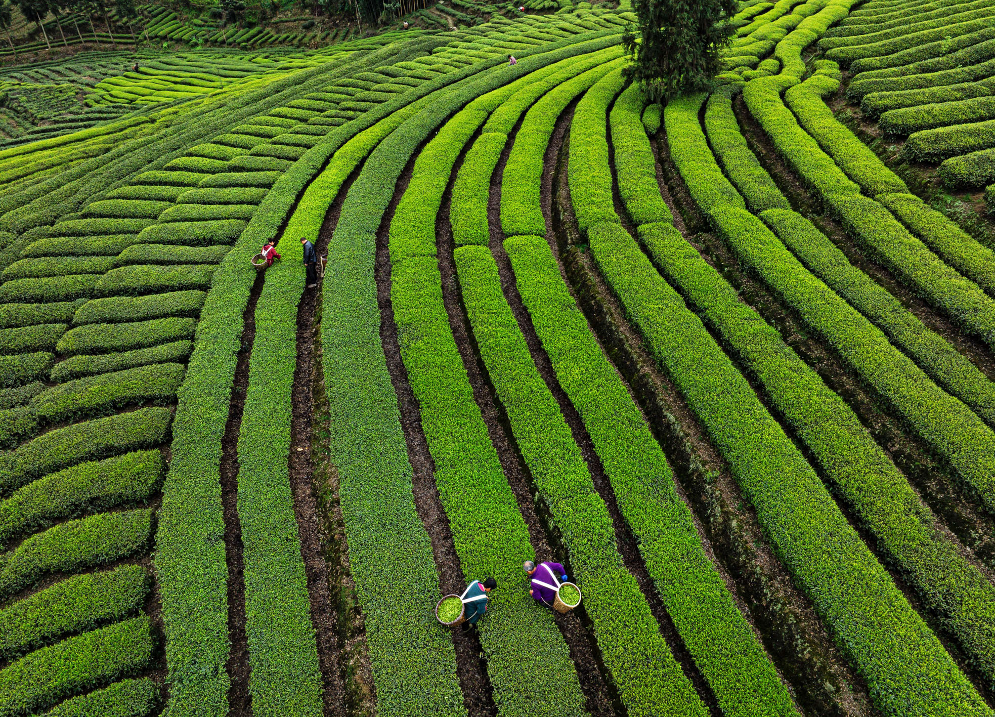 3月15日,在四川省乐山市沐川县利店镇,茶农在茶园采摘春茶。近日,各地茶树春芽萌发,茶农忙着采摘今年的头春茶供应市场。