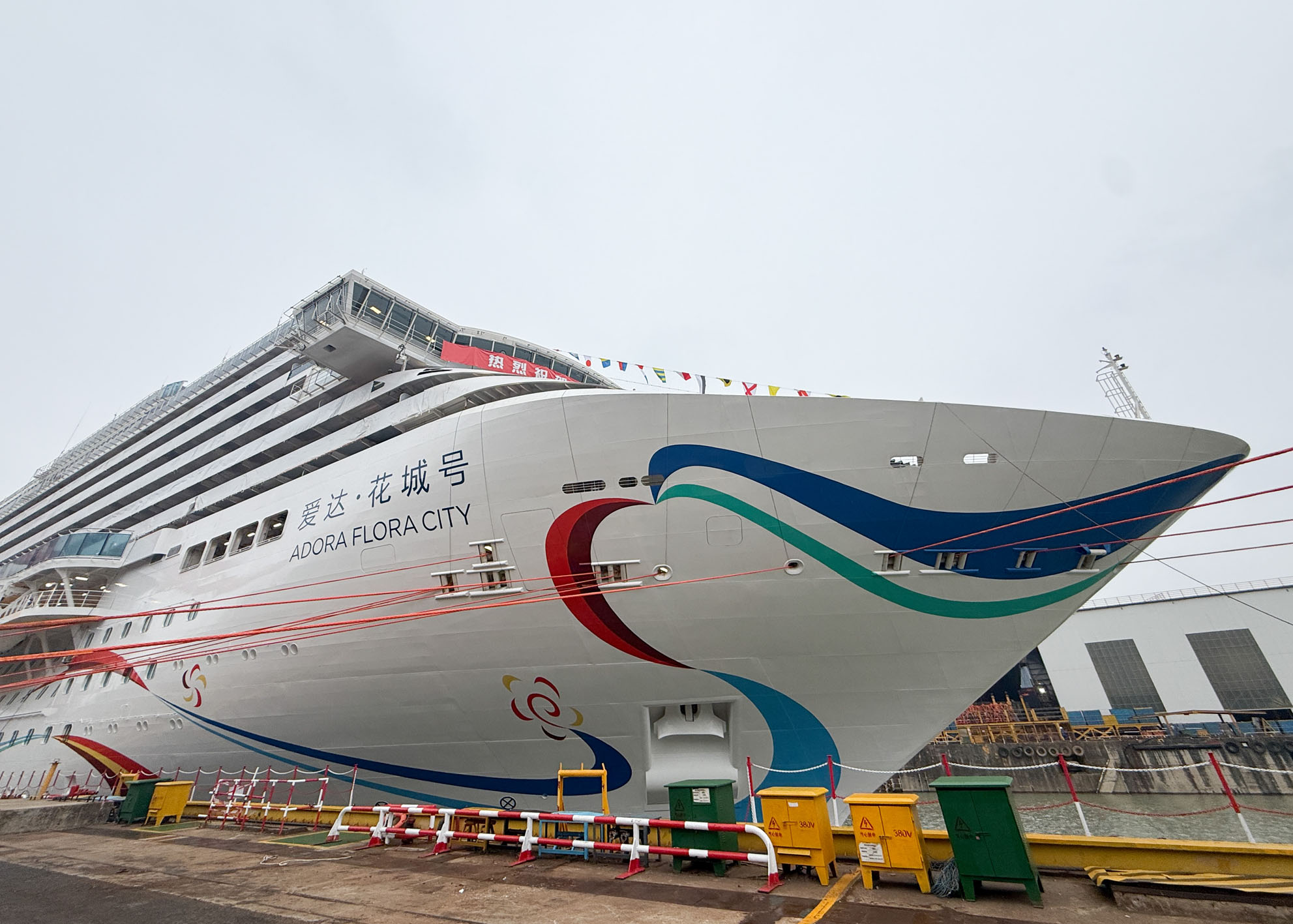我国第二艘国产大型邮轮“爱达·花城号”计划于3月20日在上海出坞。根据计划,“爱达·花城号”邮轮将于今年5月底出海试航,预计年底前正式交付。“爱达·花城号”邮轮总吨位达到14.19万吨。与首艘国产大型邮轮“爱达·魔都号”相比,“爱达·花城号”邮轮在设计和建造上进行了诸多改进。图为3月16日拍摄的第二艘国产大型邮轮“爱达·花城号”。
