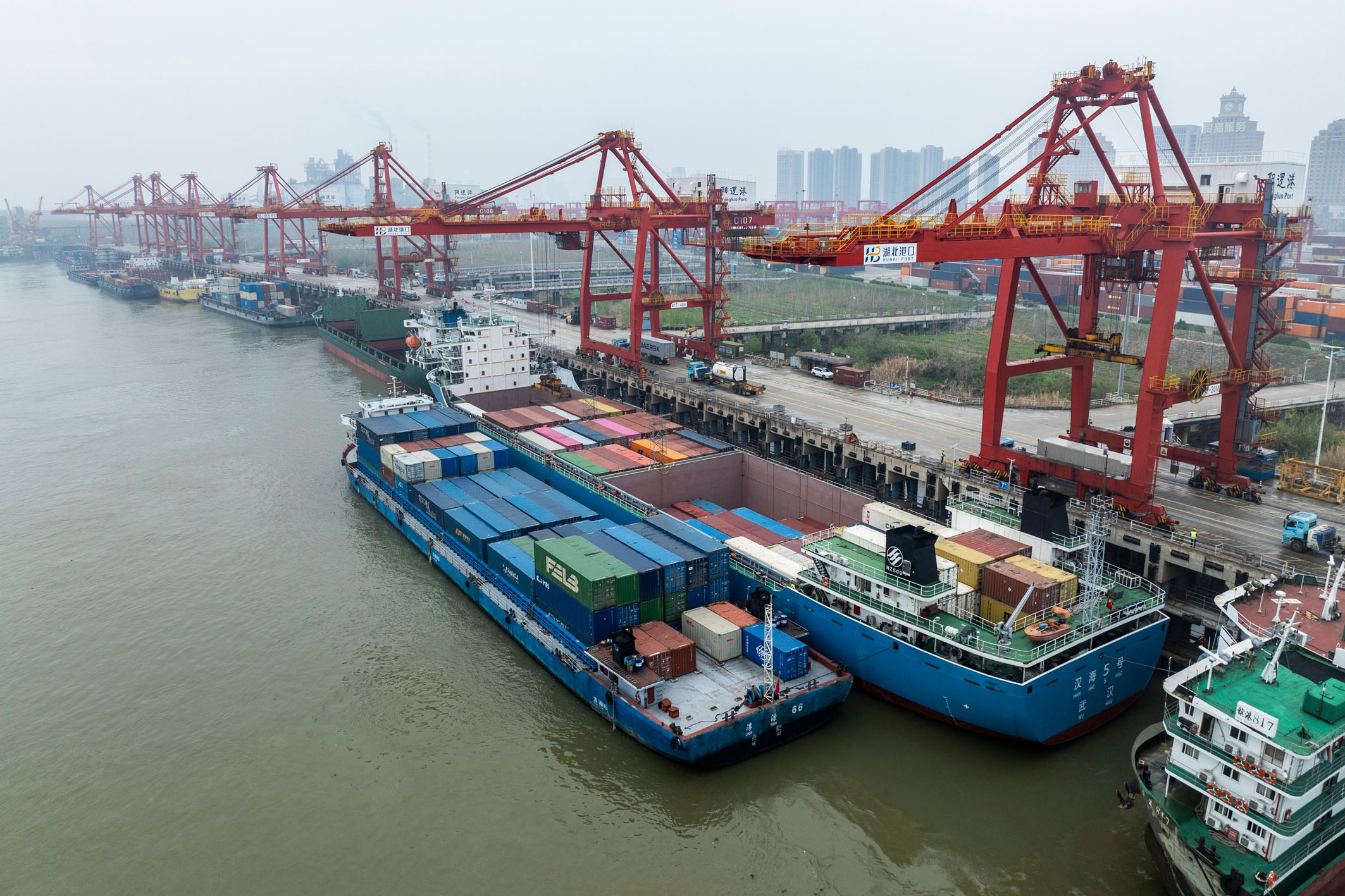 图为武汉阳逻港(无人机照片)。
