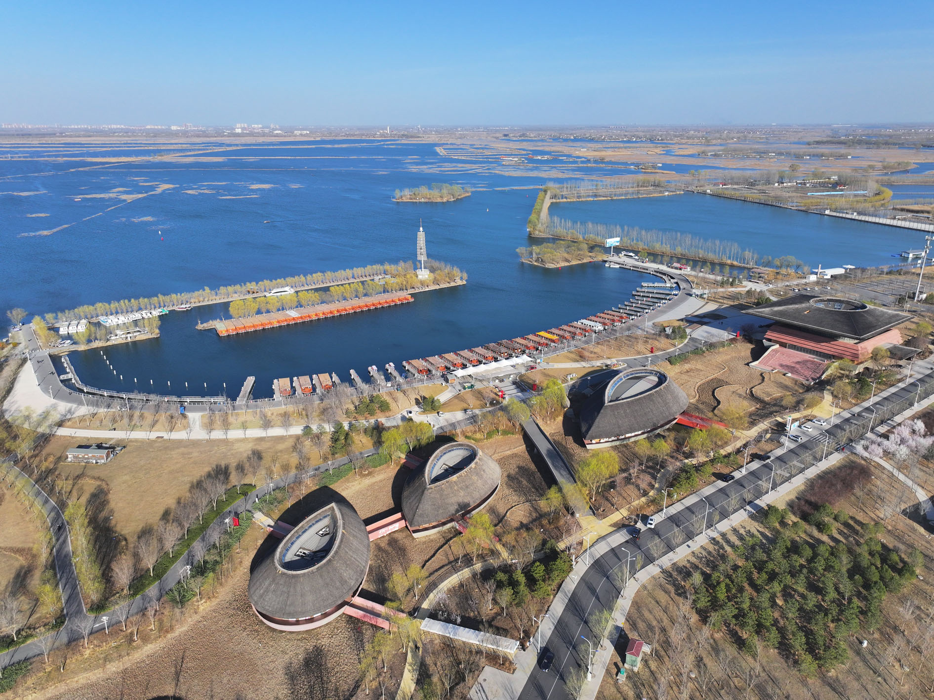 2017年4月,中共中央、国务院设立河北雄安新区的决定向社会公布。9年来,雄安新区高起点规划、高标准建设、高质量发展,一座“未来之城”,破土、萌芽、生长,阔步向人们走来。图为雄安新区白洋淀(3月18日摄,无人机照片)。