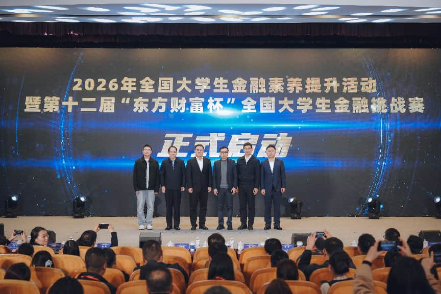 近日,2025年“东方财富杯”全国大学生金融素养提升活动总结会在东华大学举办,来自全国各地的高校代表、获奖师生代表,以及东华大学学生代表共200余人齐聚申城。活动现场,2026年全国大学生金融素养提升活动暨第十二届“东方财富杯”全国大学生金融挑战赛启动。