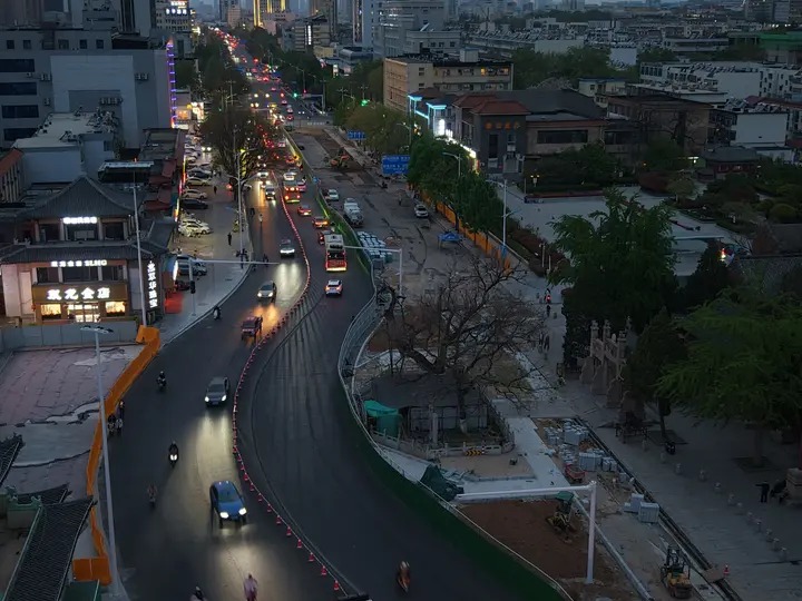 为严格保护文物、方便游客参观,2025年8月,山东省人民政府批复同意在岱庙保护范围内实施双龙池环境整治项目。3月6日,泰安市正式启动东岳大街(福全街—仰圣街)基础设施更新项目。4月13日,记者在现场看到,东岳大街夹于岱庙和双龙池之间的247.436米路段已南移11米,“搬家”至双龙池南侧。“该路段南移后已经通车,双龙池周边仍封闭铺设石材,整个项目计划4月底竣工。”施工方山东宏润市政园林工程有限公司现场安全负责人赵加栋介绍。
