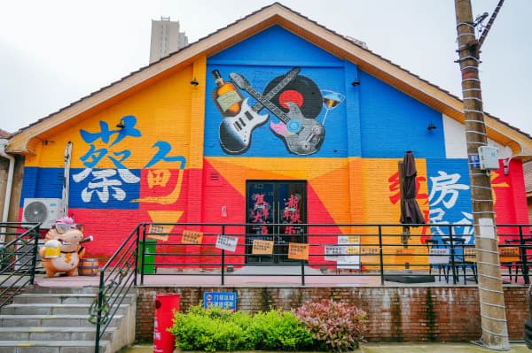 拉环咖啡的改造最花心思。主理人刘小飞带着对老建筑的偏爱,几乎没动分毫原有结构。“与其造一间千篇一律的咖啡馆,不如让老房子自己讲故事。”刘小飞说。走进“拉环”咖啡店,简约文艺风中尽显设计巧思。店内宽敞明亮,水泥灰的墙面,搭配大量金属元素,美式街头涂鸦以及冲浪板装饰,环境潮酷,拍照很出片。工业的硬朗与生活的柔软在此完美融合。