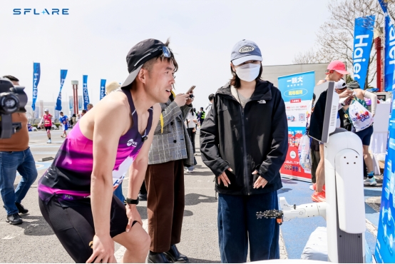 星护H1通过多模态传感器与AI算法,能够在短时间内对跑者进行无接触式状态评估,识别心率、呼吸频率及肌肉疲劳迹象,并生成个性化的健康建议方案。不少跑者表示,这种“刚跑完就能获得机器人提供的专业指导”的体验前所未有,既新奇又贴心。