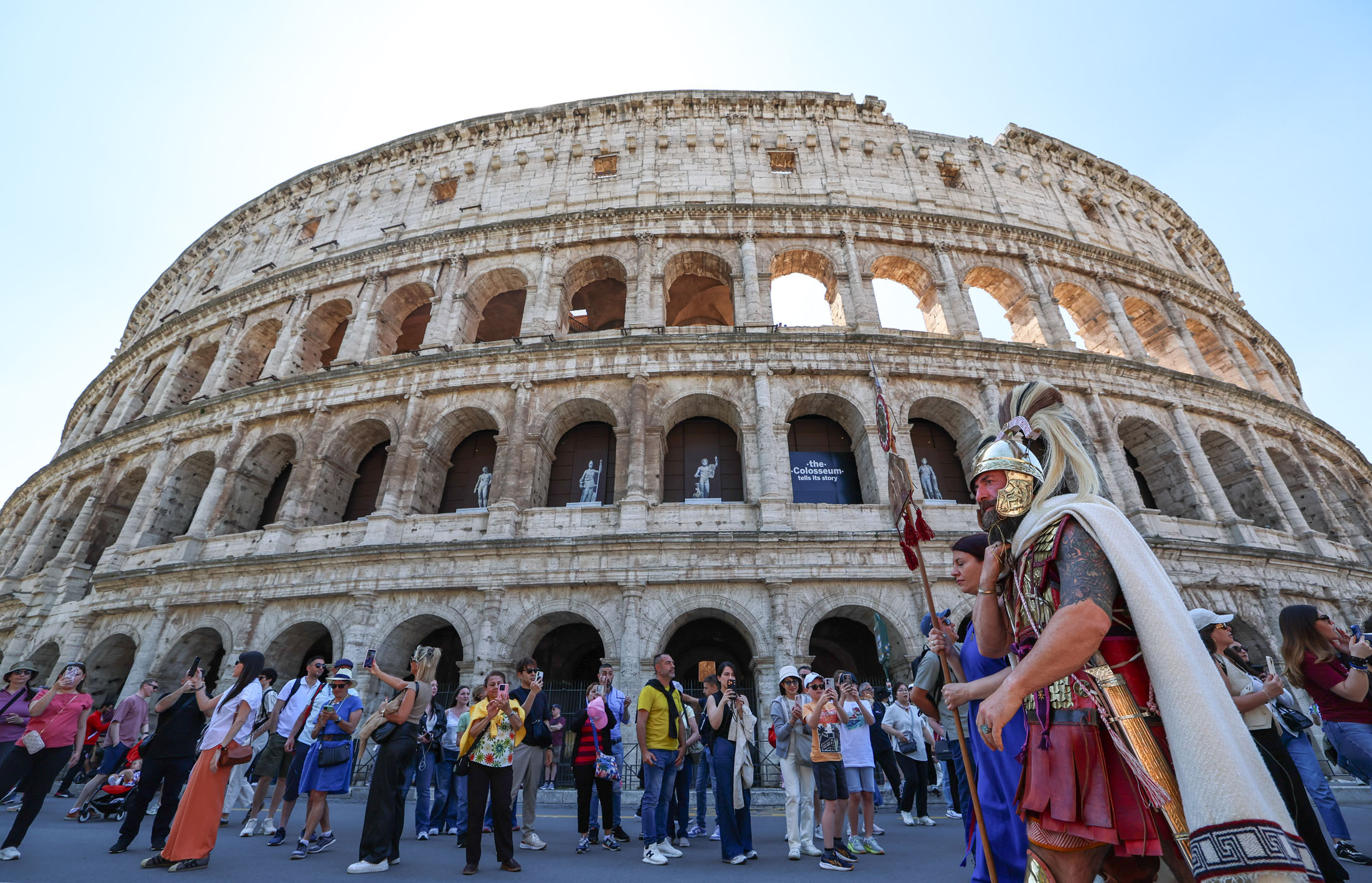 4月19日,意大利罗马举行盛装游行活动,庆祝即将到来的罗马建城日。相传罗马建城日为公元前753年4月21日,今年4月21日是罗马建城2779周年。图为在意大利罗马斗兽场附近,人们身着传统服饰参加盛装游行。