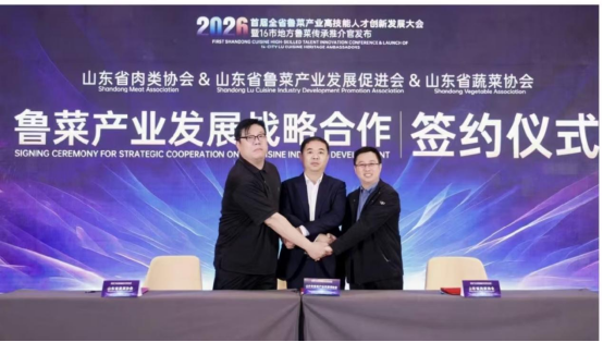 会议还举行了16市地方鲁菜传承推介官发布仪式,首批推介官将承担挖掘地方鲁菜文化内涵、推广地域特色美食、讲好鲁菜故事的职责。同期,山东省鲁菜产业发展促进会与山东省肉类协会、山东省蔬菜协会签署战略合作协议,三方将聚焦食材供应、菜品研发、品牌推广、人才培育等领域,构建从田间到餐桌的全产业链协同发展体系。