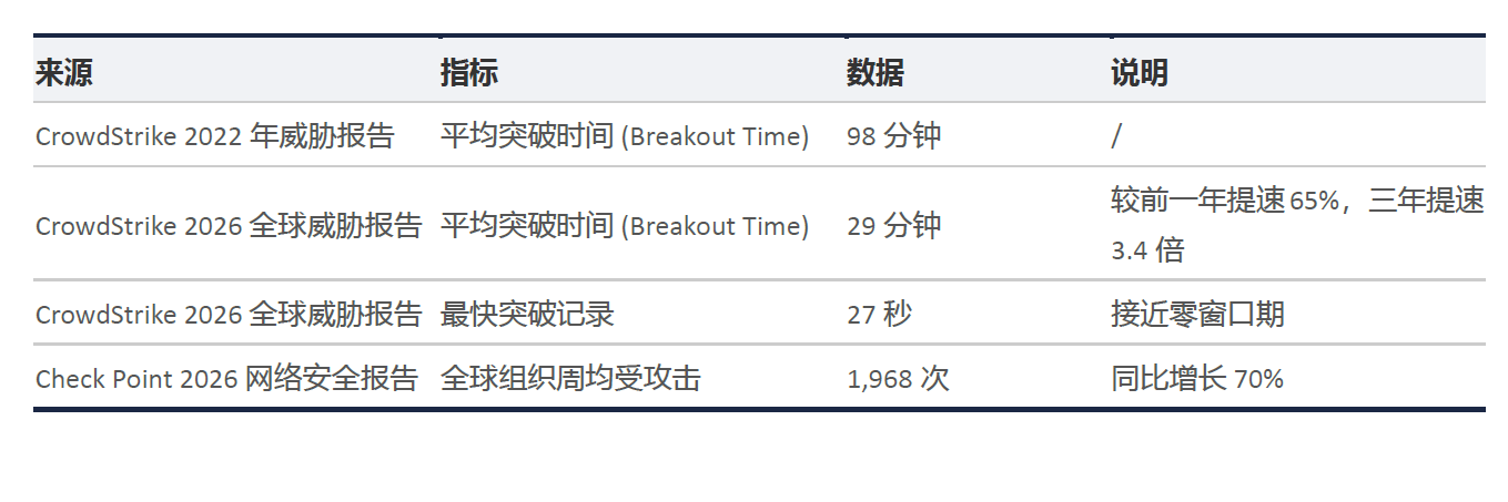现在的AI攻击有多快?平均突破时间29分钟,最快的27秒。而传统靠人看告警、人工研判、层层审批那套流程,走完一圈至少45分钟。因此,必须用AI来驱动安全运营,这是把攻防之间100倍的时间差拉平的唯一办法。